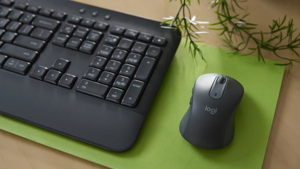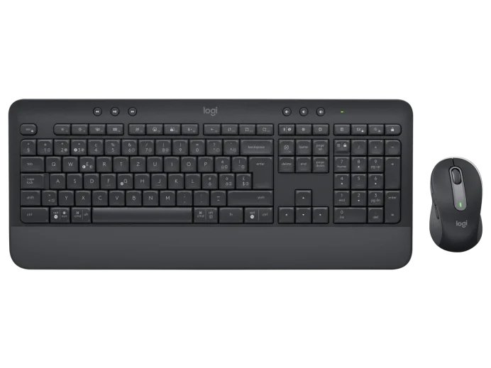Den medfølgende Signature M650 mus er ergonomisk designet med bløde sidegreb og lydløse klik, hvilket reducerer belastning og støj i både kontor- og hjemmemiljøer.